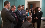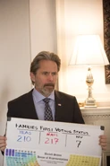 With 10 hours until the vote, Kent and Bill Ericsson brief a very ill Selina on how the “lose the vote” efforts are going. It’s essential that the bill fails if Selina wants a chance at winning the upcoming election. As Ericsson explains to Mike, they’re still publicly campaigning for yes votes -- they’re just sending the worst possible people to do it. Meanwhile, some of those very people -- specifically Jonah and Richard -- work to convince Congressman Moyes to help pass the bill. As Bill and Kent planned, their ineptitude effectively dissuades Moyes from voting yes.