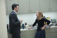 The next morning, Selina gives a press conference and announces sanctions against China. Afterwards, Amy tries to tell Selina about Bob’s odd behavior, but Selina refuses to listen. Later, before an event at the Museum of Natural History, Selina videoconferences with Bob and finally notices his strange behavior.